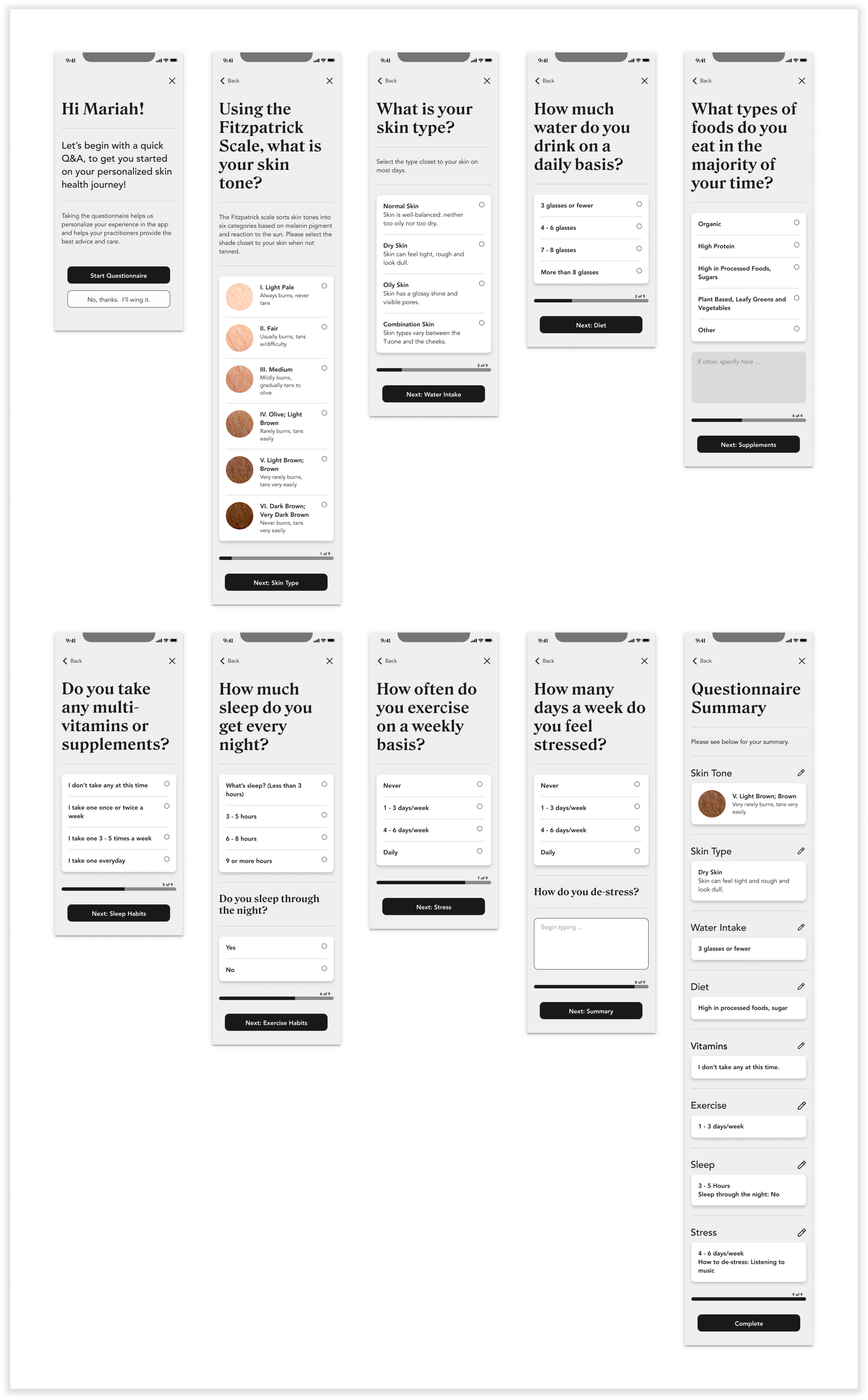 In order to solve the problem at hand and meet the client’s goals, it was crucial for me to first understand what type of user I was designing for. My objective in defining K’ept Health’s persona(s) was to understand users’ pain points and their goals towards managing their skin health.